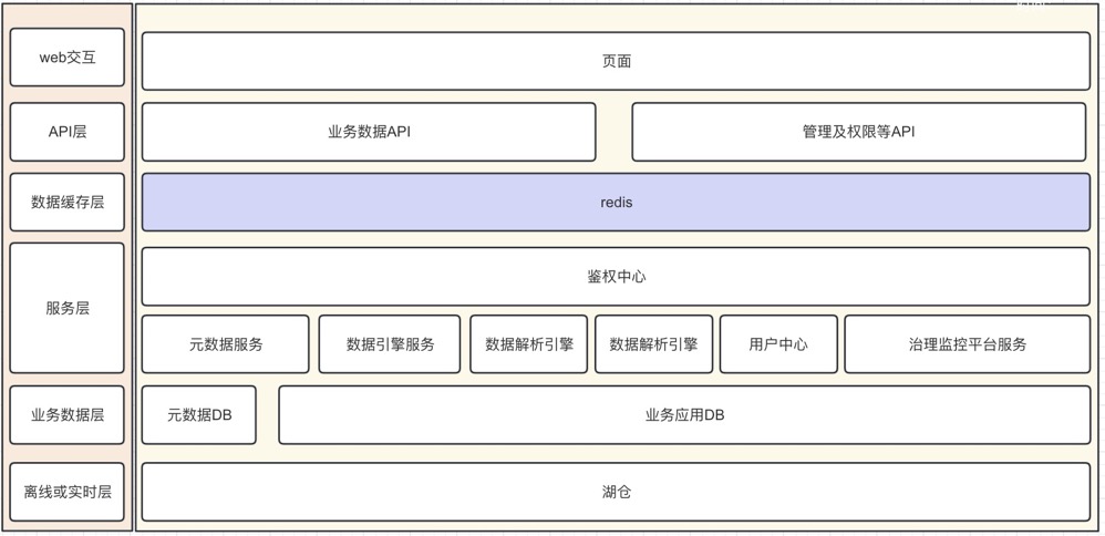 图示为自助型分析工具的简单架构,数据来源于湖仓。上层针对业务可以使用一个关系型数据库维护业务元数据,在利用一个类似 starRocks 这样的 olap 引擎来加速的数据查询时效性能。再往上就是利用微服务思想对不同功能的业务划分到不同的微服务模块之中形成能我们的服务层,再往上就是我们的数据缓存层,针对一些变化不频繁或不变的数据,可以加载到缓存之中,再比如周期变化的数据,固定维度数据如地区数据,都可以加载进缓存,周期变化的数据可以定期去清理,再往上即对外暴露 API 与前端或外部进行交互了。